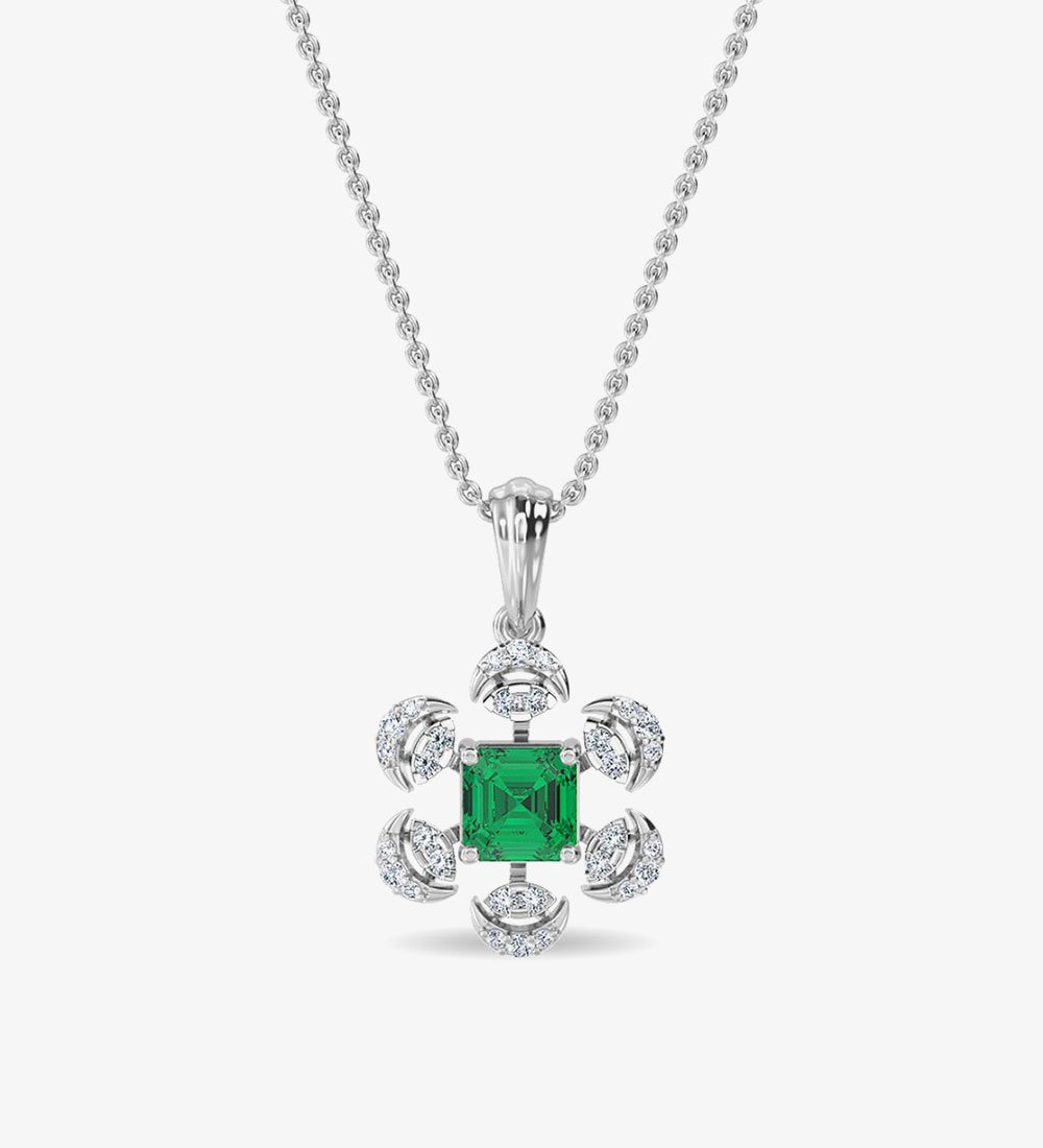 Craftsmanship and Detail: Our skilled artisans have crafted this necklace with precision and attention to detail. The 18k white gold setting provides a luxurious backdrop for the gemstones, creating a piece that is not only beautiful but also built to last.