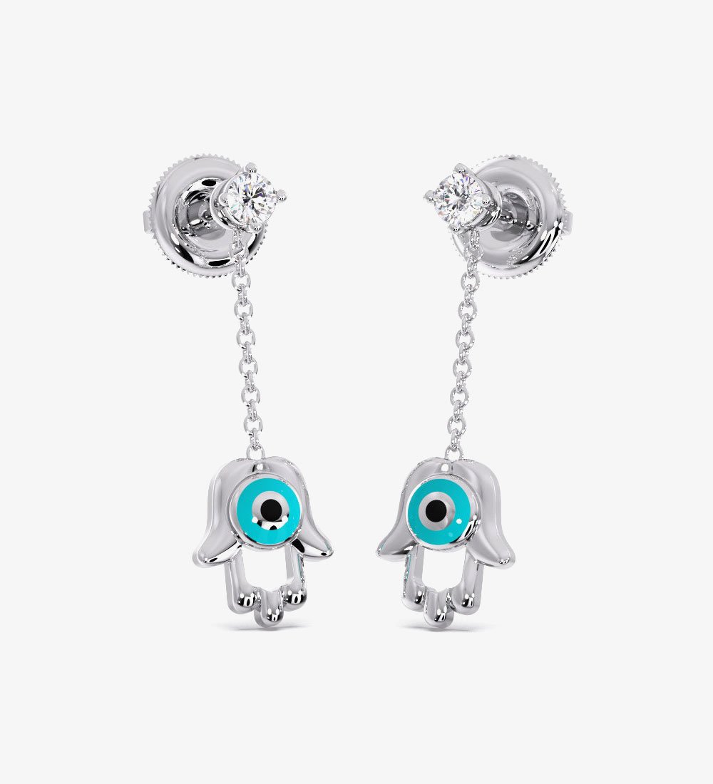 Hamsa Evil Diamond Dangling Eye Earrings